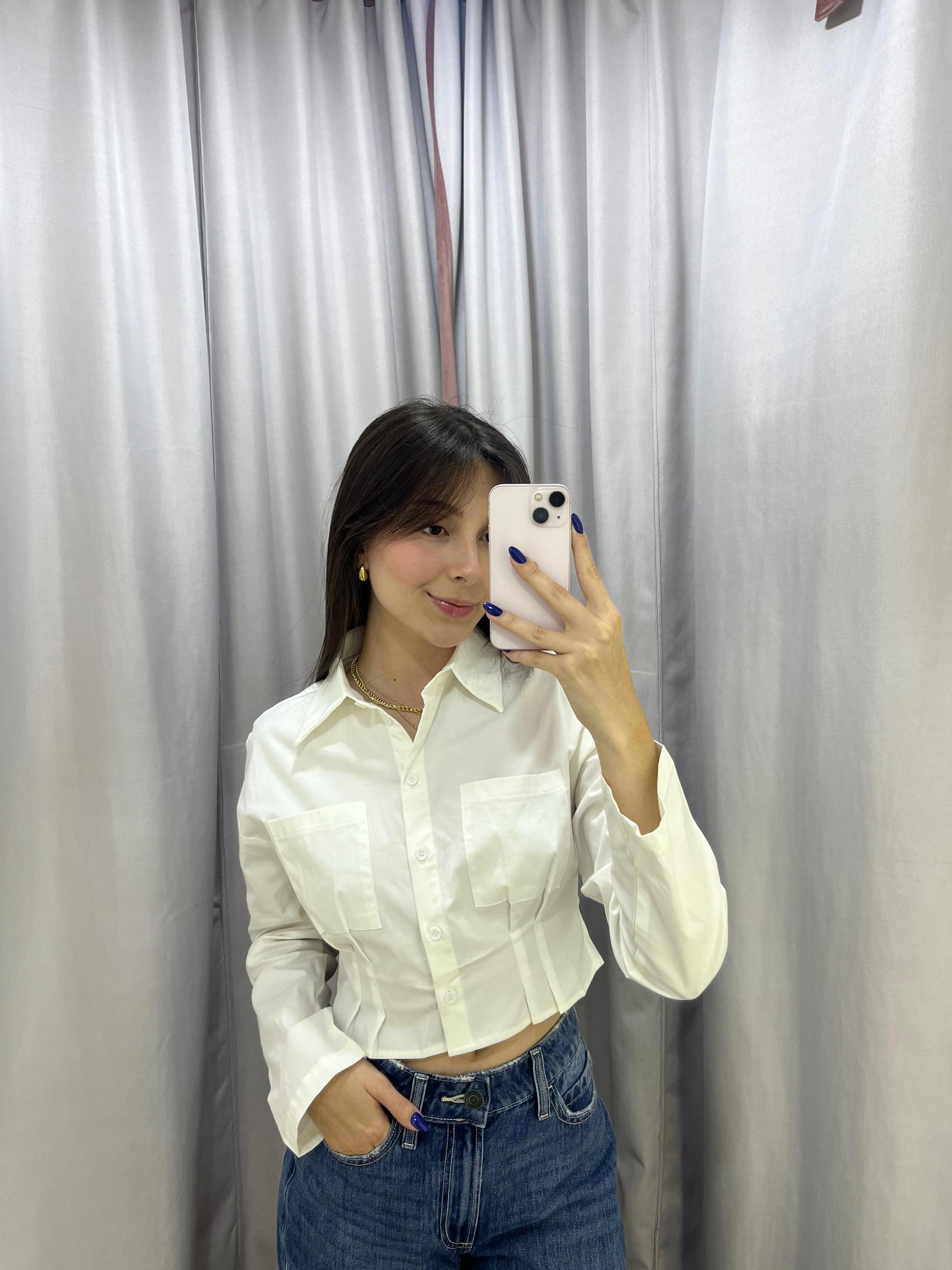 Camisa blanca de bolsillos delanteros
