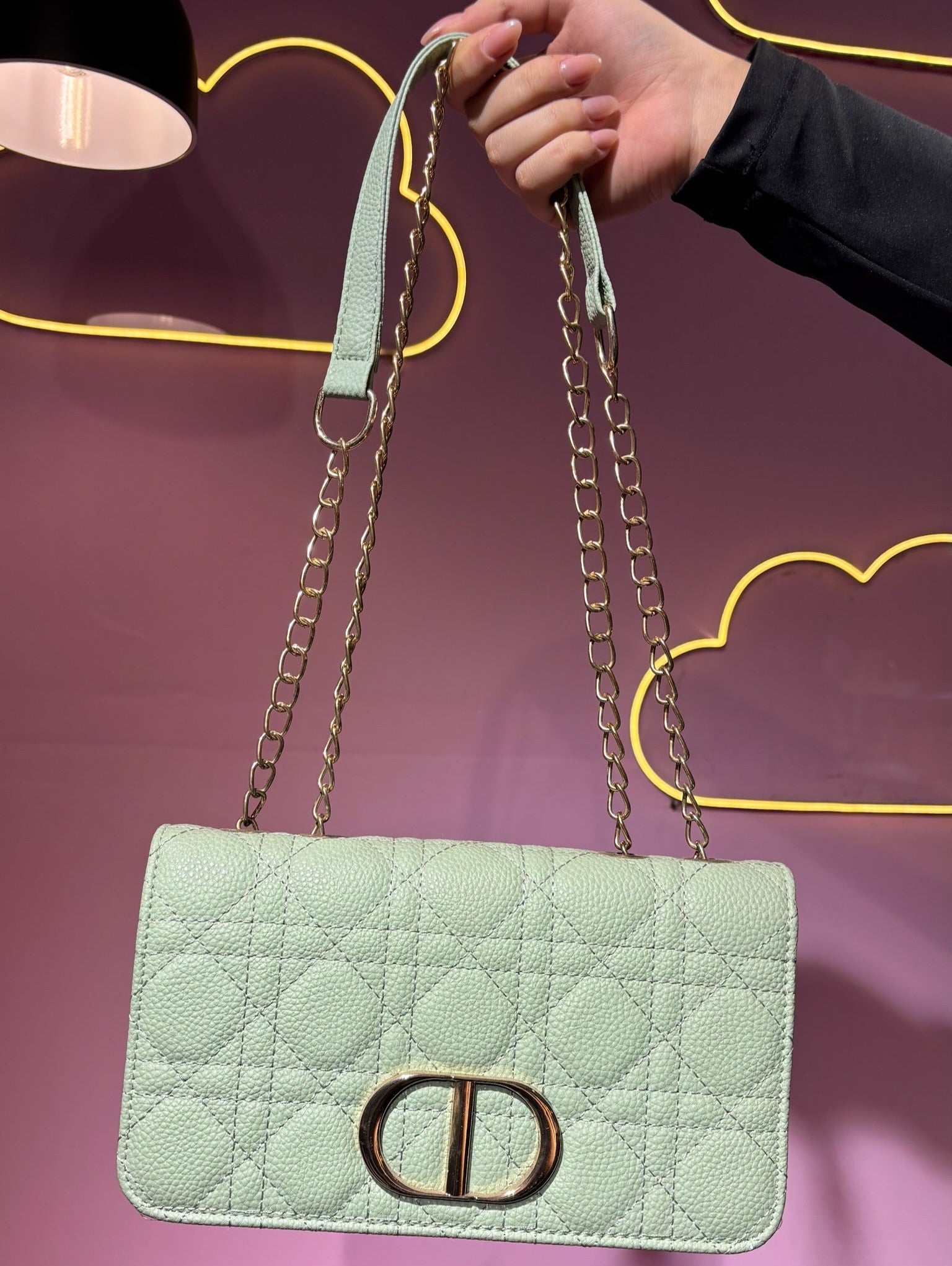 Cartera acolchada verde lima cadena dorada