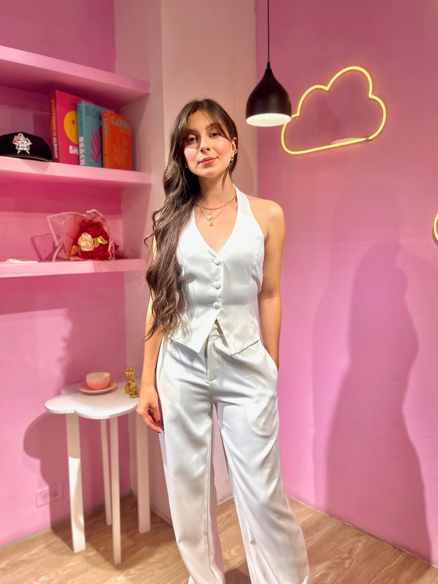 Chaleco blanco de tirantes al cuello y espalda descubierta