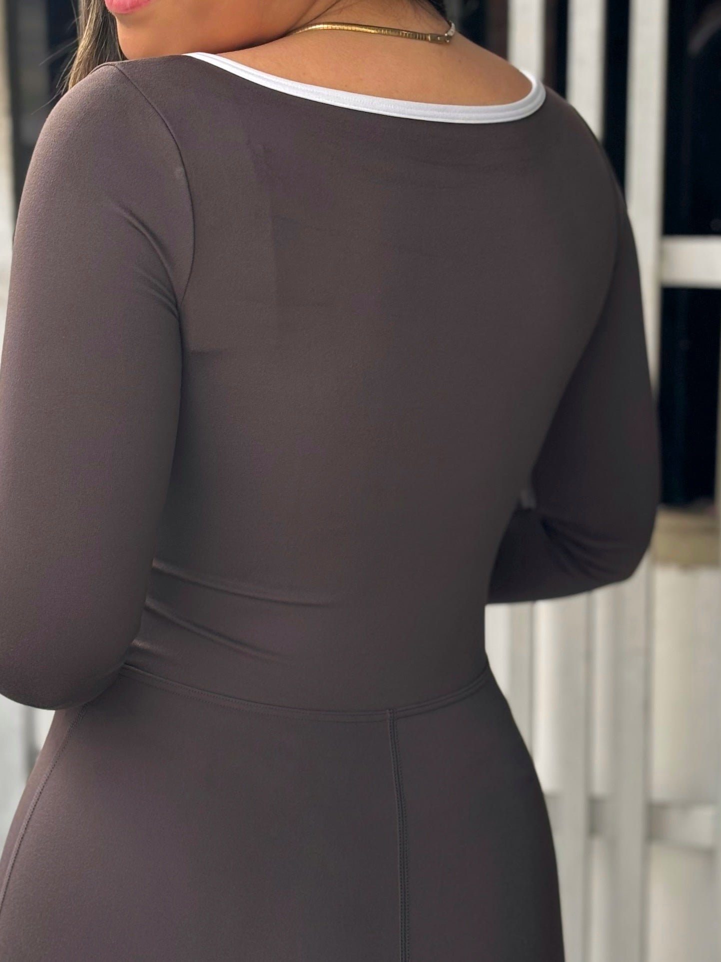 Enterizo manga larga marrón con bordes en el cuello blanco HOLLISTER