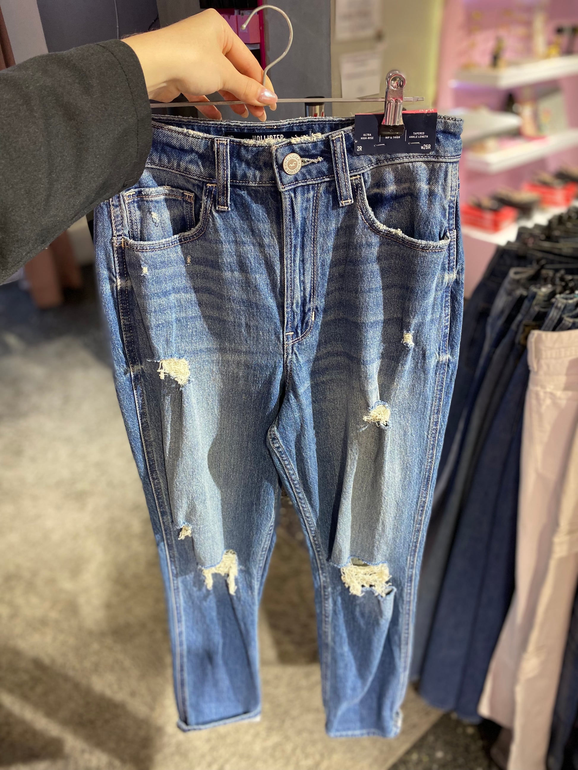 Mom jean Hollister prelavado con roturas (cd:0813278)