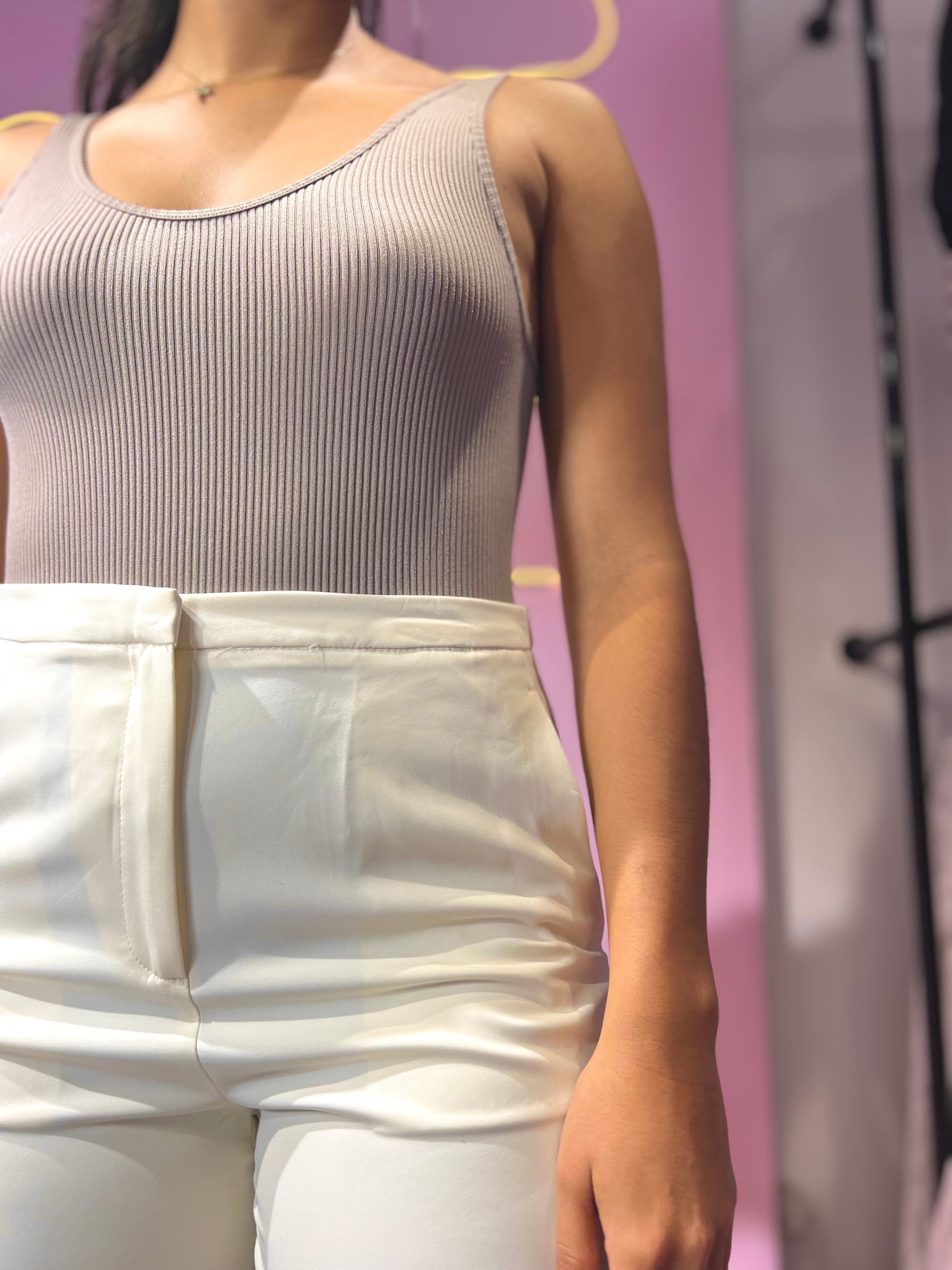 Pantalón wide leg de vestir de tonalidad crema Love Tree