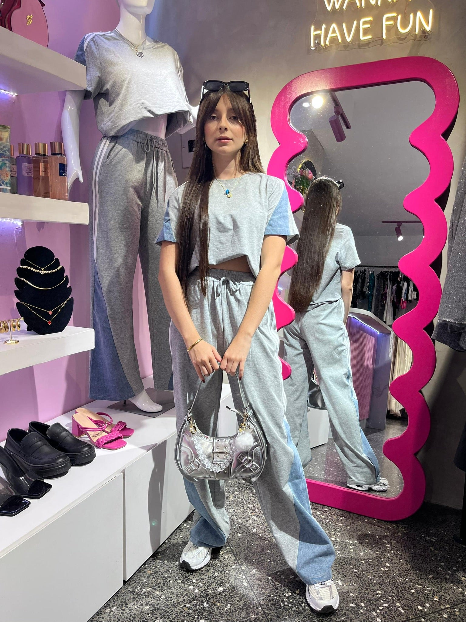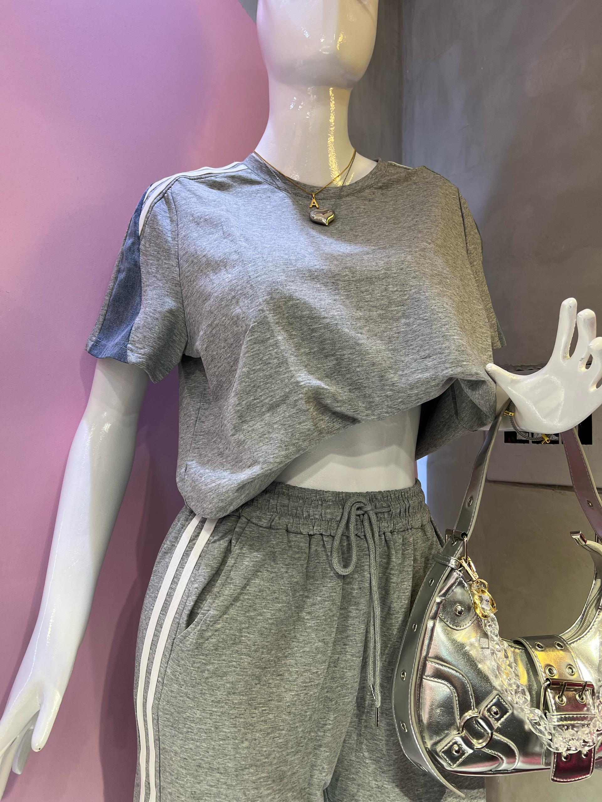 Set de jogger y tshirt gris con denim
